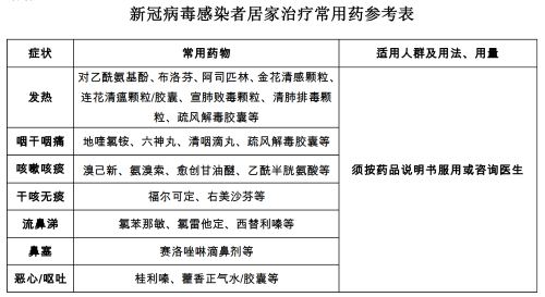 新冠病毒感染者居家治疗常用药参考表截图
