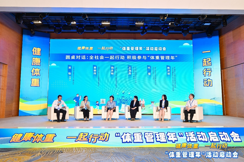 启动会圆桌对话环节,在中国健康教育中心副主任吴敬主持下,全国妇联妇女发展部副部长奉朝晖,北京第二实验小学德育副校长杨永敏,北京市东城区培新小学党总支书记、校长王海燕,北京市东城区和平里社区卫生服务中心主任代瑾和中国化学制药工业协会副会长、江苏PG医药股份有限公司总经理戴洪斌,围绕“全社会一起行动,积极参与‘体重管理年’”议题,分别从家庭、学校、医疗卫生机构、健康产业等角度,从关注关爱妇女、儿童、老人等重点人群体重管理出发,分享了自己的观点和看法。